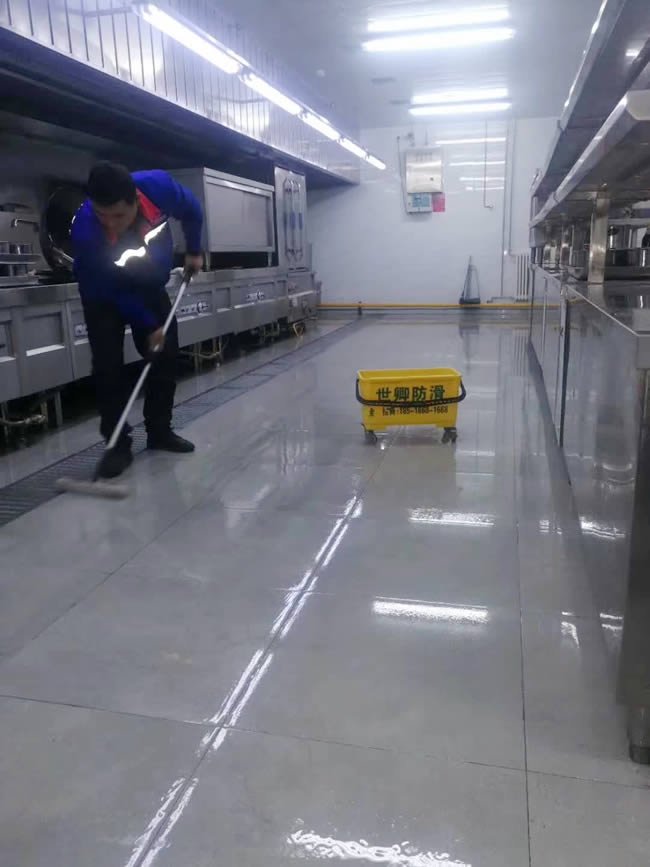 陜西渭南市渭南金城工業(yè)園廚房及走廊地面防滑處理