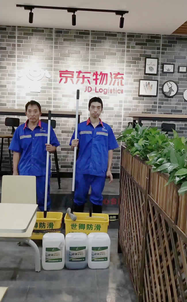 世卿防滑-東莞總代理!廣東東莞市京東物流第一階段的食堂及臺階防滑項目合作完美收工,京東的物流能做大做強離不開強哥對員工的關愛,同時京東能選擇與世卿合作那么代表什么,因為世卿防滑防護是這個領域內的權威品牌,經得起重重管卡及世界級標準儀器檢測。關愛行走安全,選擇世卿防滑,一點都沒錯。