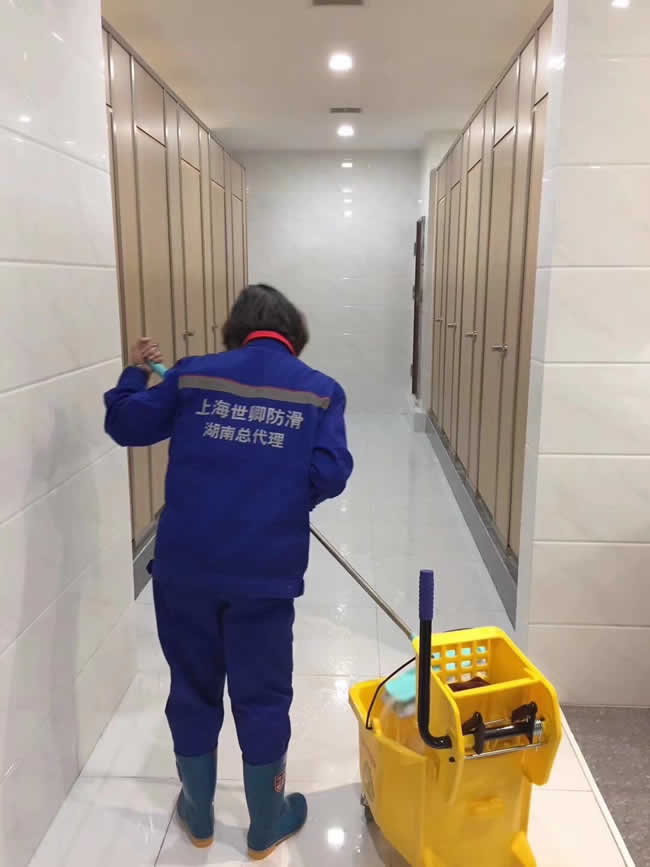 世卿湖南團隊,精干力量!為上市軍工企業景嘉微電子公司防滑施工中,我們非常注重品質,良好的品質體現在服務上,服務的品質體現于細節中,細節1:施工前做好完善的施工準備,細節2:給客戶將木質門及大理石材質用專業措施保護起來,保護原有美觀,細致服務。細節3:同一地面不同材質不同顏色的磚分開施工,力求完美的防滑效果。細節4:施工材料不直接放在客戶地面上,用專業墊鋪上,保護客戶原地面。細節5:施工中使用施工鞋,并要求只在施工區域使用,不將有藥水的施工鞋踩到客戶其他地面上,保護客戶未施工地面。我們用心做好服務,注重細節品質,給客戶完美的服務體驗是我們一直追求的服務宗旨。