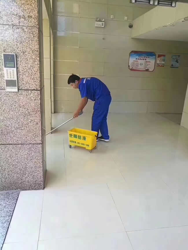 海口世卿防滑進社區啦恒基惜緣花城樣板施工完成,物業管理的領導一致好評接下來等待住戶的體驗。關愛行走安全,首選世卿防滑。