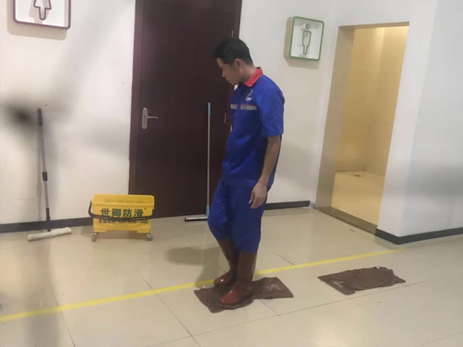海南海口市“喜盈門建材生活廣場”C區洗手間地面防滑昨晚處理完工,為每位顧客提供更安心的購物環境,世卿防滑還您一個輕松自如安全行走的環境。