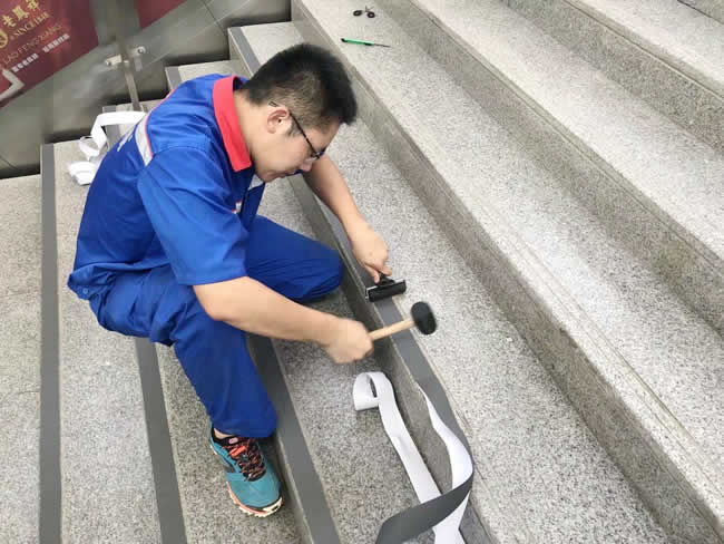 上海鐵路局旗下高鐵站丹陽站安全階梯地面防滑膠帶工程