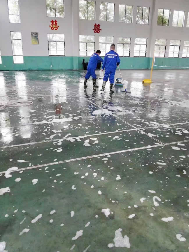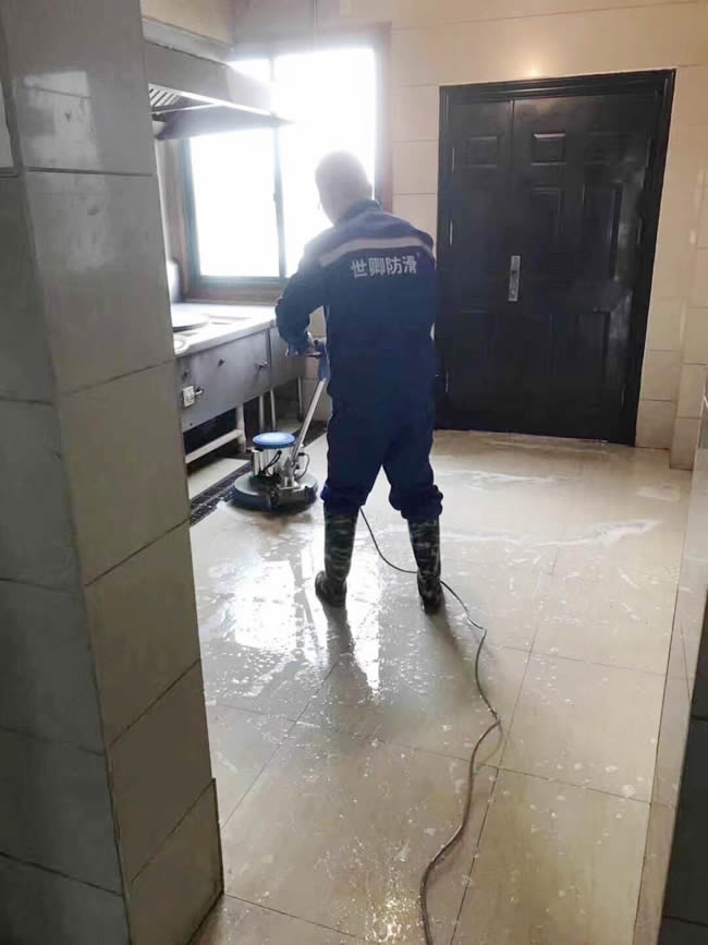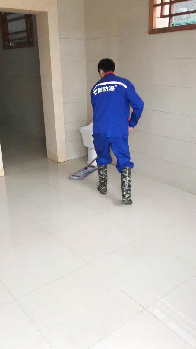 【關愛行走安全,預防意外滑倒】世卿防滑團隊于2018-3-21為紹興市城南街道鳳凰村委廣場活動場地進行防滑施工,防滑效果滴!解決地滑問題,世卿專業。