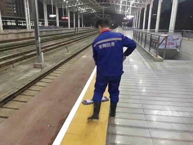 上海鐵路局旗下常州高鐵站,站臺及盲道磚地面防滑處理